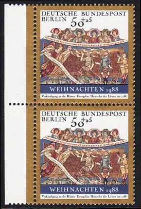BERLIN 1988 Michel-Nummer 829 postfrisch vert.PAAR RAND links - Weihnachten