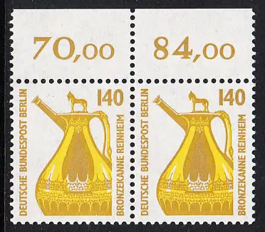 BERLIN 1989 Michel-Nummer 832 postfrisch horiz.PAAR RAND oben (a) - Sehenswürdigkeiten: Bronzekanne, Reinheim