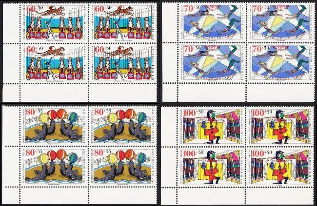 BERLIN 1989 Michel-Nummer 838-841 postfrisch SATZ(4) BLÖCKE ECKRAND unten links - Zirkus