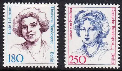 BERLIN 1989 Michel-Nummer 844-845 postfrisch SATZ(2) EINZELMARKEN - Frauen der deutschen Geschichte: Lotte Lehmann, Sangerin / Luise von Preußen, Königin von Preußen
