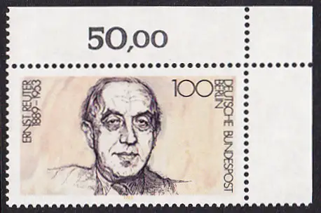 BERLIN 1989 Michel-Nummer 846 postfrisch EINZELMARKE ECKRAND oben rechts - Ernst Reuter, Politiker, Oberbürgermeister von Berlin