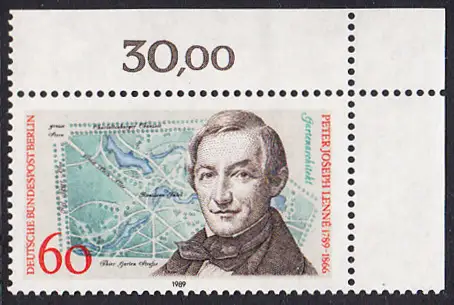 BERLIN 1989 Michel-Nummer 850 postfrisch EINZELMARKE ECKRAND oben rechts - Peter Joseph Lenné, Gartenarchitekt