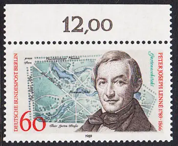 BERLIN 1989 Michel-Nummer 850 postfrisch EINZELMARKE RAND oben - Peter Joseph Lenné, Gartenarchitekt