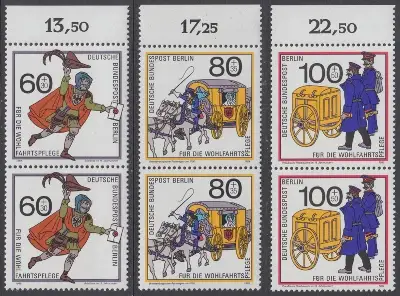 BERLIN 1989 Michel-Nummer 852-854 postfrisch SATZ(3) vert.PAARE RÄNDER oben - Postbeförderung im Laufe der Jahrhunderte