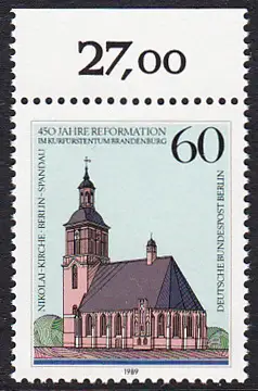 BERLIN 1989 Michel-Nummer 855 postfrisch EINZELMARKE RAND oben (d) - Reformation im Kurfürstentum Brandenburg