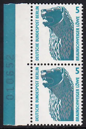 BERLIN 1990 Michel-Nummer 863 postfrisch vert.PAAR RAND links (a) - Sehenswürdigkeiten: Löwenstandbild, Braunschweig