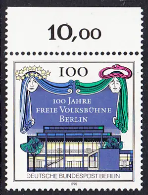 BERLIN 1990 Michel-Nummer 866 postfrisch EINZELMARKE RAND oben (a) - 100 Jahre Freie Volksbühne Berlin