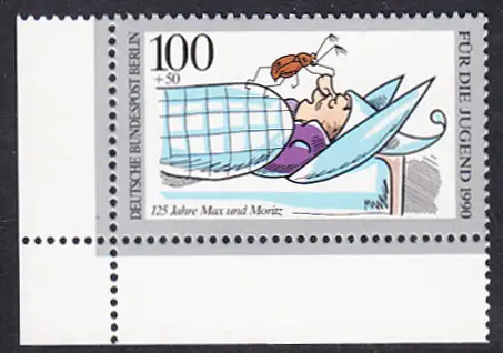BERLIN 1990 Michel-Nummer 871 postfrisch EINZELMARKE ECKRAND unten links - 125 Jahre Max und Moritz