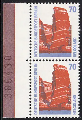 BERLIN 1990 Michel-Nummer 874 postfrisch vert.PAAR RAND links (BZ/b) - Sehenswürdigkeiten: Helgoland