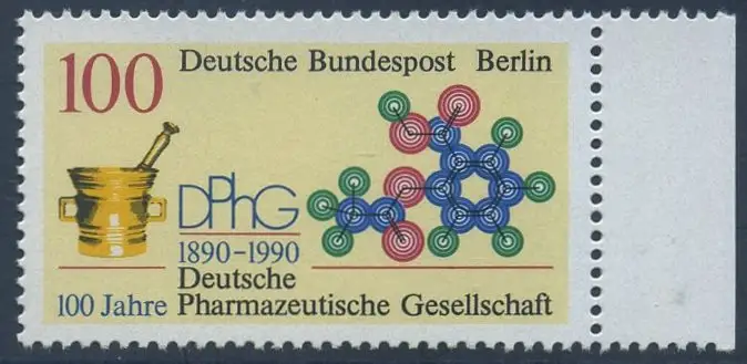 BERLIN 1990 Michel-Nummer 875 postfrisch EINZELMARKE RAND rechts - Deutsche Pharmazeutische Gesellscbaft (DPhG)