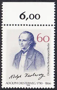 BERLIN 1990 Michel-Nummer 879 postfrisch EINZELMARKE RAND oben (a) - Adolph Dieseterweg, Pädagoge
