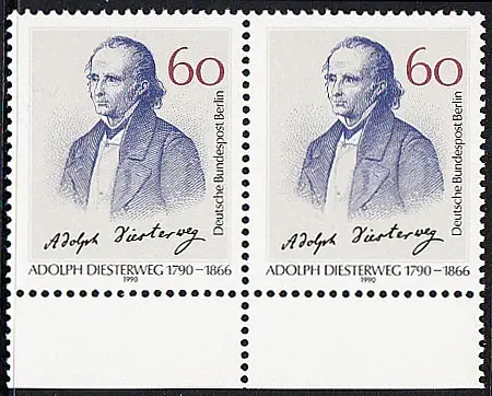 BERLIN 1990 Michel-Nummer 879 postfrisch horiz.PAAR RAND unten - Adolph Dieseterweg, Pädagoge