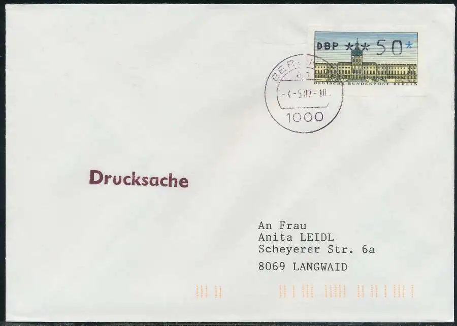 BERLIN ATM 1-050 DRUCKSACHE EF FDC 7E463A