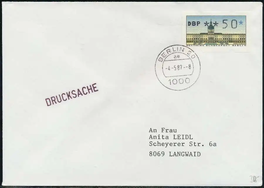 BERLIN ATM 1-050 DRUCKSACHE EF FDC 7E463E