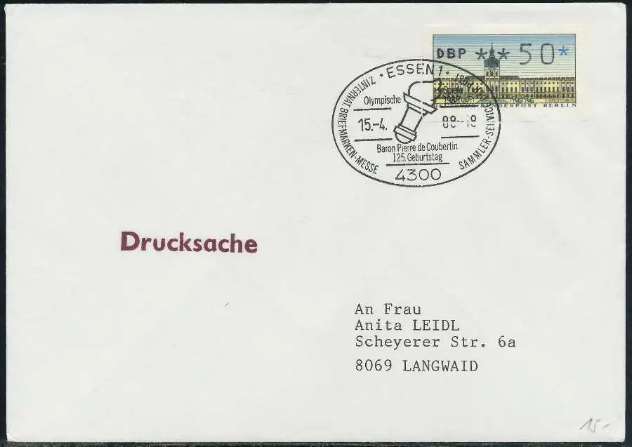 050 Pfg Wert aus der ATM-Ausgabe von 1987, FDC, auf Drucksache