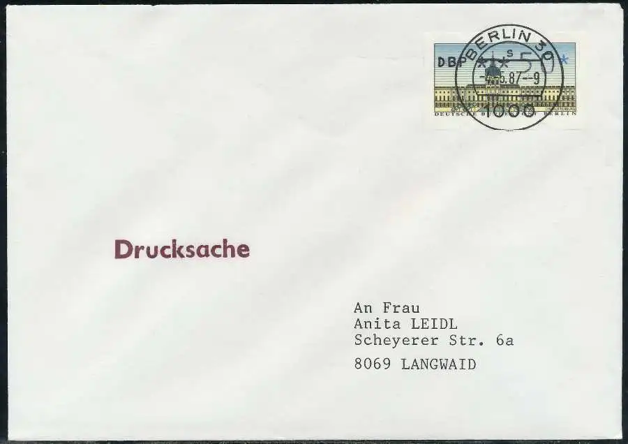 050 Pfg Wert aus der ATM-Ausgabe von 1987, FDC, auf Drucksache