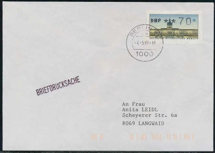 BERLIN ATM 1-070 BRIEFDRUCKSACHE EF FDC 7E46CE