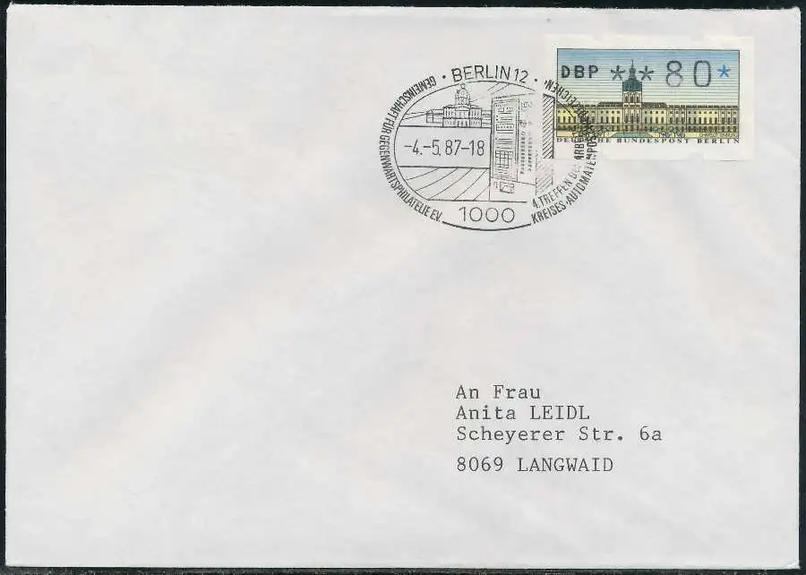 080 Pfg Wert aus der ATM-Ausgabe von 1987, FDC, auf normalem Brief