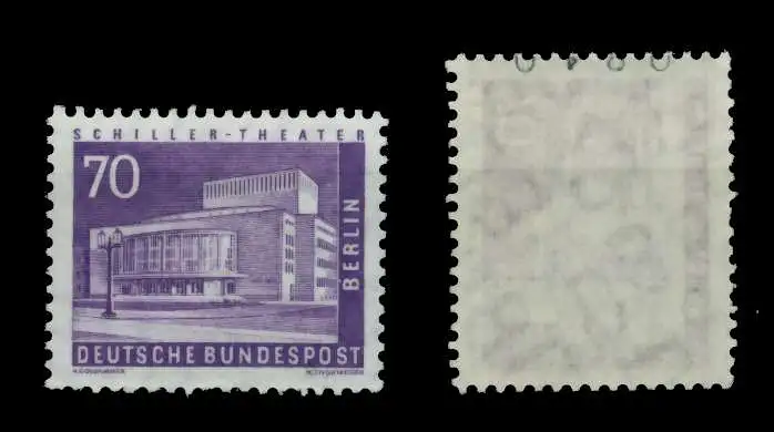 070 Pfg Wert aus der Freimarkenausgabe Stadtbilder von Berlin, die Nummer ist stark versetzt aufgebracht und liegt über den Zähnung