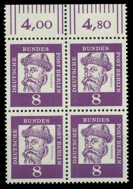 BERLIN DS BED. DEUT. Nr 201 postfrisch VIERERBLOCK ORA 80983A