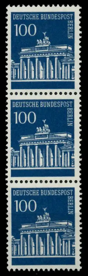 100 Pfg Wert aus der Ausgabe Brandenburger Tor im 3er Streifen, ein Wert mit rückseitiger Nummer 130