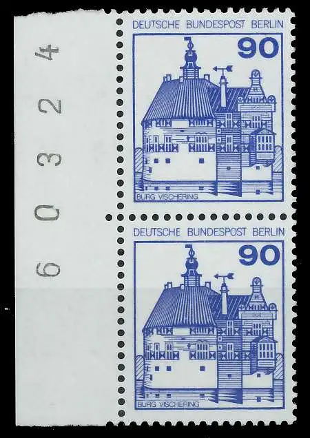 090 Pfg Wert aus der Ausgabe Burgen und Schlösser, Bogennummer im Seitenrand