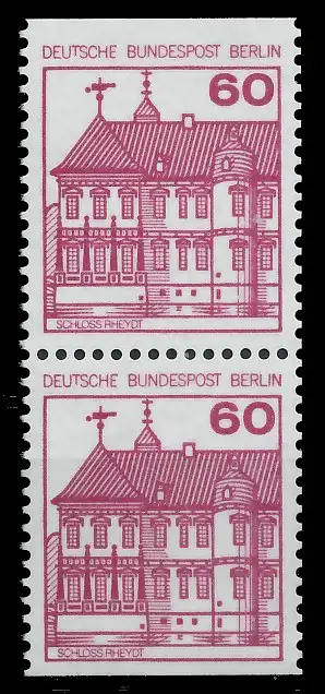 060 Pfg Wert aus der Berlin-Dauerserienausgabe Burgen und Schlösser, oben und unten geschnitten aus Markenheftchen als senkrechtes Paar (MichelNr.: 611C/D)