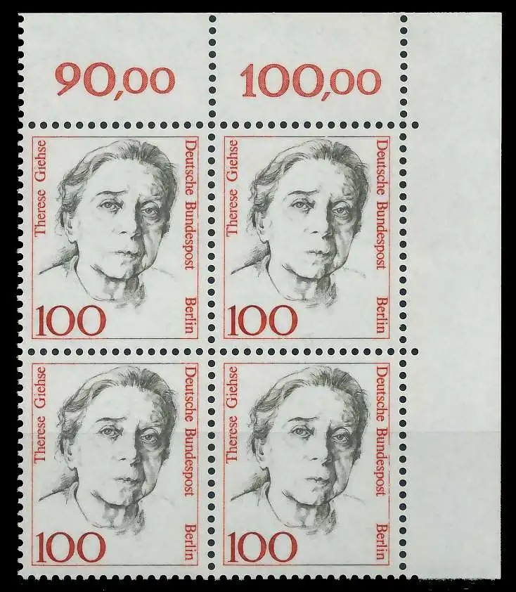 BERLIN DS FRAUEN Nr 825 postfrisch VIERERBLOCK ECKE-ORE 8F911E