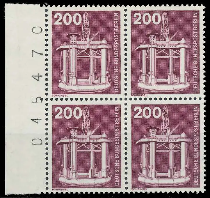 200 Pfg Wert aus der Ausgabe Industrie und Technik, Seitenrand mit Bogennummer
