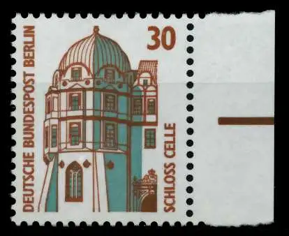 030 Pfg Wert aus der Berlin-Dauerserienausgabe Sehenswürdigkeiten, Bogenrand mit anhängendem Pass-Strich