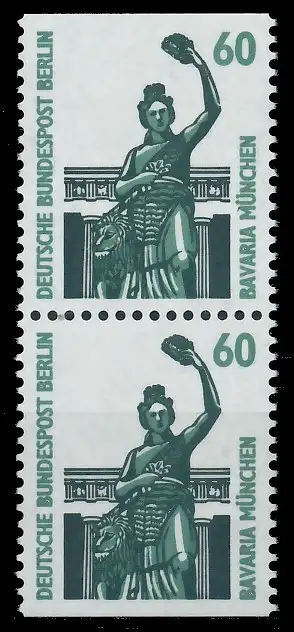 060 Pfg Wert aus der Berlin-Dauerserienausgabe Sehenswürdigkeiten, oben und unten geschnitten aus Markenheftchen als senkrechtes Paar (MichelNr.: 795C/D)