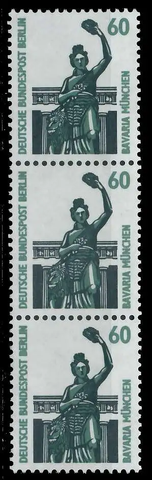 060 Pfg Wert aus der Berlin-Dauerserienausgabe Sehenswürdigkeiten als 3er Streifen, ein Wert mit rückseitiger Nummer 425