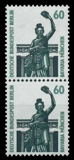 060 Pfg Wert aus der Berlin-Dauerserienausgabe Sehenswürdigkeiten als 2er Streifen, ein Wert mit rückseitiger Nummer 395