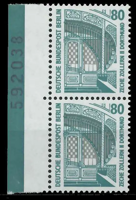 080 Pfg Wert aus der Berlin-Dauerserienausgabe Sehenswürdigkeiten, Seitenrend mit Bogennummer