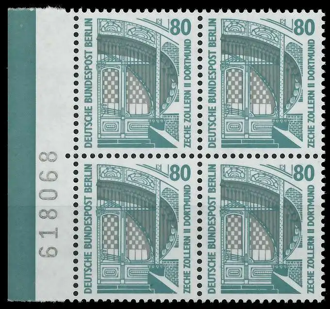 080 Pfg Wert aus der Berlin-Dauerserienausgabe Sehenswürdigkeiten, Seitenrand mit Bogennummer
