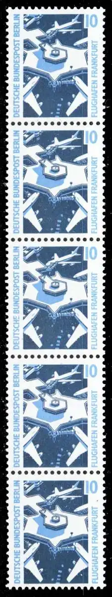 010 Pfg Wert aus der Berlin-Dauerserienausgabe Sehenswürdigkeiten als 5er Streifen, ein Wert mit rückseitiger Nummer 240