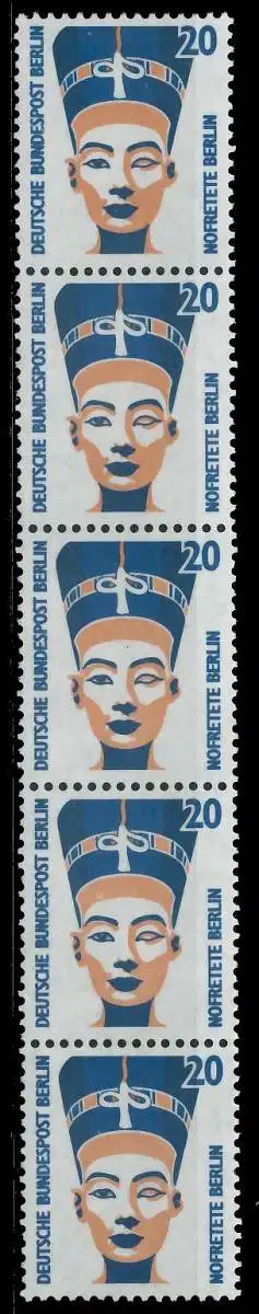 020 Pfg Wert aus der Berlin-Dauerserienausgabe Sehenswürdigkeiten als 5er Streifen, ein Wert mit rückseitiger Nummer 190