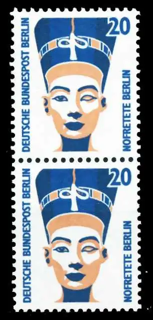020 Pfg Wert aus der Berlin-Dauerserienausgabe Sehenswürdigkeiten als 2er Streifen, ein Wert mit rückseitiger Nummer 495