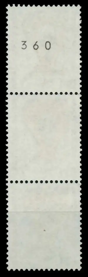 140 Pfg Wert aus der Berlin-Dauerserienausgabe Sehenswürdigkeiten als 3er Streifen, ein Wert mit rückseitiger Nummer, ein mal gefaltet