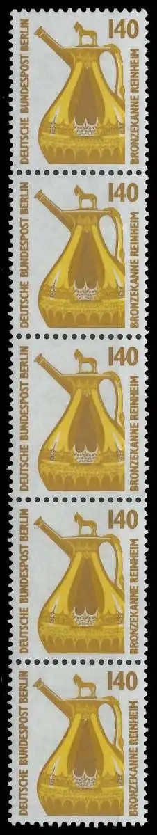 140 Pfg Wert aus der Berlin-Dauerserienausgabe Sehenswürdigkeiten als 5er Streifen, ein Wert mit rückseitiger Nummer 445