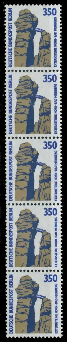 350 Pfg Wert aus der Berlin-Dauerserienausgabe Sehenswürdigkeiten als 5er Streifen, ein Wert mit rückseitiger Nummer 245
