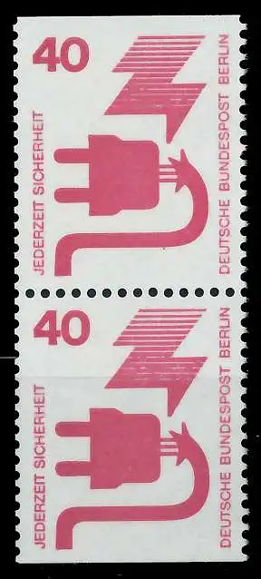 040 Pfg Wert aus der Berlin-Dauerserienausgabe Unfallverhütung, oben und unten geschnitten aus Markenheftchen als senkrechtes Paar (MichelNr.: 407C, 407D)