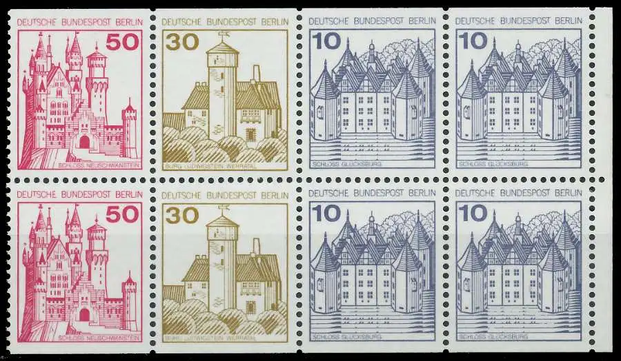 Berlin Burgen und Schlösser Heftchenblatt 18 / 50+30+10+10 (MichelNr.: 18, 532C/D, 534C/D, 536C/D)