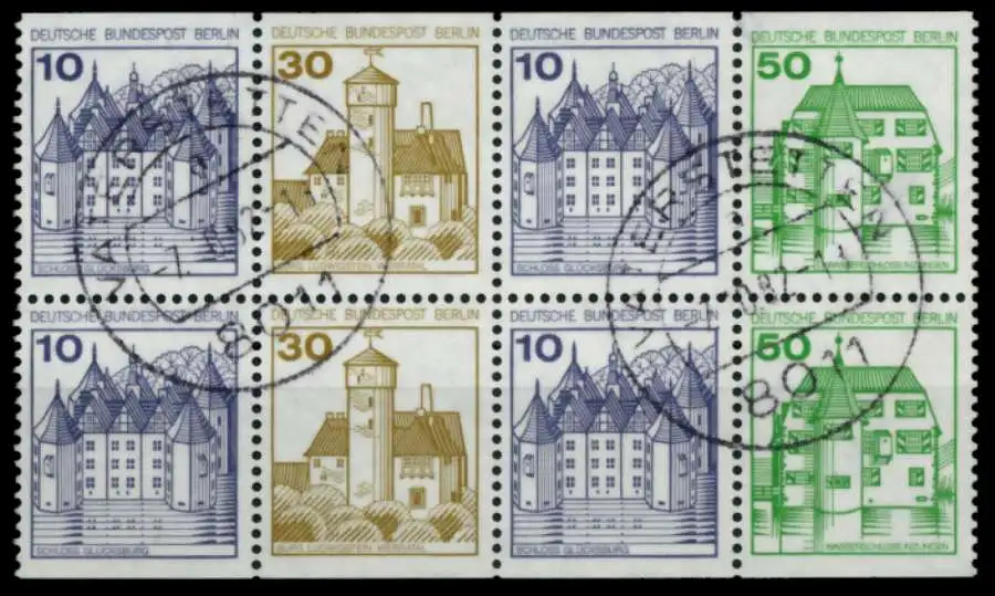 Burgen und Schlösser Heftchenblatt 19 / 10+30+10+50, oben und unten geschnitten (MichelNr.: 19, 532C/D, 534C/D, 615C/D)