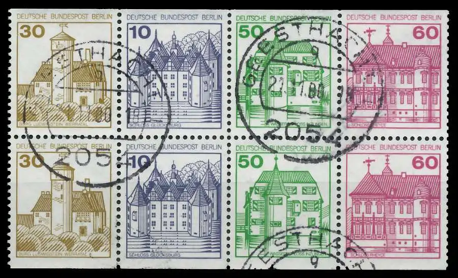 Burgen und Schlösser Heftchenblatt 20 / 30+10+50+60, oben und unten geschnitten (MichelNr.: 20, 532C/D, 534C/D, 611C/D, 615C/D)