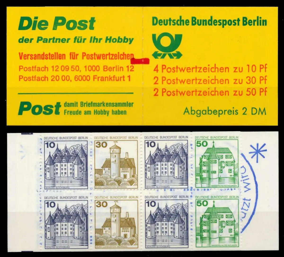 Berlin Burgen und Schlösser Markenheftchen 11 (10+30+10+50), Replame Krüger Briefmarken / Hawid, mit Zählbalken