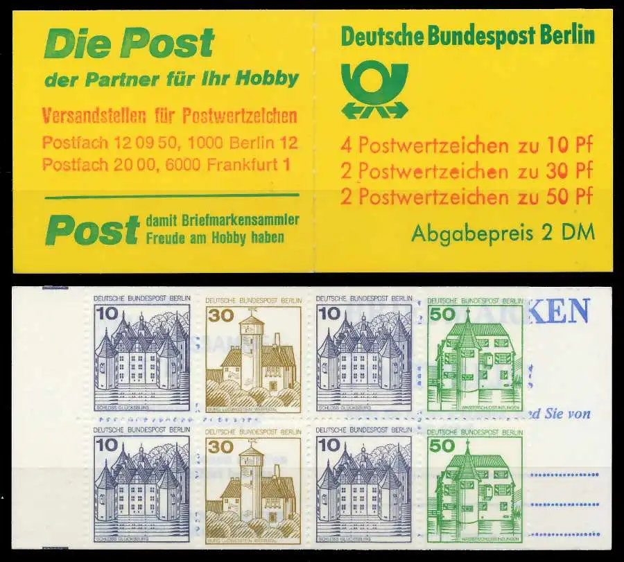 Berlin Burgen und Schlösser Markenheftchen 11 (10+30+10+50), Reklame Sieger ETB / Briefmarken zum Postpreis