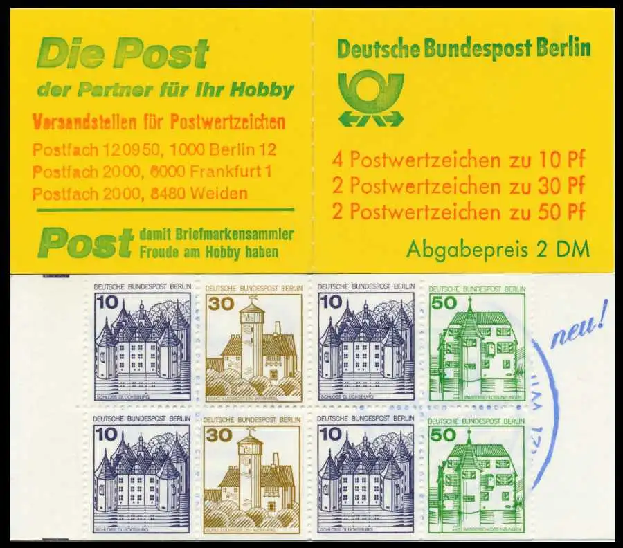 Berlin Burgen und Schlösser Markenheftchen 11 (10+30+10+50), Reklame Dietzel / Hawid