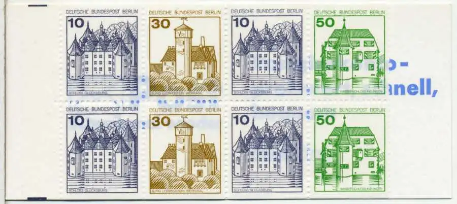 Berlin Burgen und Schlösser Markenheftchen 11 (10+30+10+50), Reklame Krüger - Briefmarkensammler / Postgirokonto