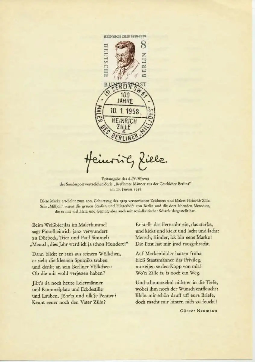 8 Pfg Wert aus der Ausgabe Männer aus der Geschichte Berlins, Ersttagsblatt Vorläufer-Ausgabe